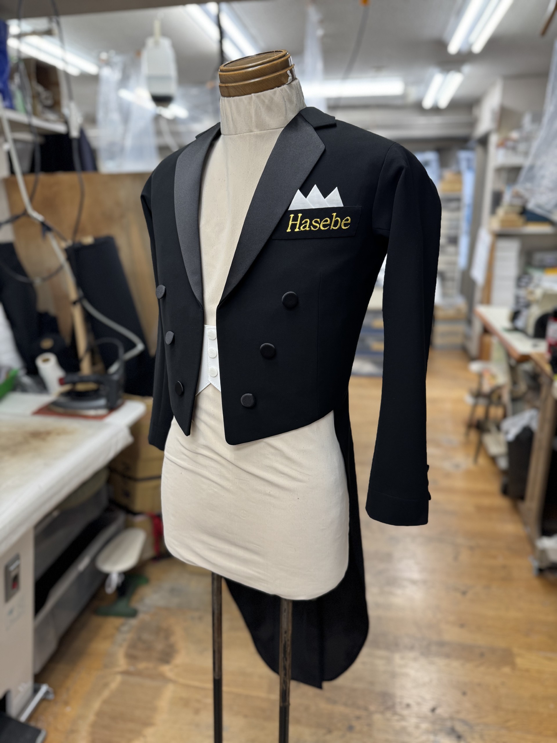 新着情報 NEWS Weekly Collection Report 2025.10.20~ 2025.10.24 Dance Costume HASEBE ~Weekly Collection Report~ 2025.10.20~ *New Tail Suit vol.1 素材:ポリエステルNo.3 大阪よりお越しいただいたアマチュアのお客様です。 燕尾服と併せてラテン衣装もオーダーしてくださっております。 ホールドを組んだ肩のライン、肩の傾斜・左右差、これらを完璧に網羅できるのがフルオーダーです。 いかり肩・なで肩・筋肉の張り・腕の太さetc. これら全てのお客様が千差万別です。 また体型の変化やホールドの変化によりお直しができることもフルオーダーの強みです。 目先のお値段だけ見ると確かに高額とはなりますが、長い目で見た場合、ご自身にピッタリでその時の状況に合わせお直ししながら長年に渡ってご着用いただけます。 大阪からありがとうございました。 ラテン衣装も引き続き製作中です。 楽しみに待っていてくださいね。 *New Shirt for Tailsuit 素材:青スムース 通常は黒のメッシュ生地でお作りするイカ胸シャツ(燕尾服の中に着るシャツ)ですが、お客様よりご希望がありますと、このようなカラーのシャツもお作りしております。 ご自身で生地を持ち込まれるこだわりの強いお客様もいらっしゃいます。(その際は素材を要確認) 見えない部分ではありますが、見えない部分こそ自由にカスタマイズし、モチベーションアップへ繋げてはいかがでしょう。 *New Tuxedo & Shirt&Tail Suit 燕尾服・タキシード素材:ポリエステルNo.3 ヒダ胸シャツ:白スムース 山形県からお越しいただいたプロの先生の燕尾服・タキシード・ヒダ胸シャツです。 燕尾服、タキシードをそれぞれオーダーしますと 燕尾服上着・ズボン タキシード上着・ズボン と上下が2着分となります。 弊社ではこのようなオーダーの際は燕尾服のズボンをタキシードに流用することを推奨しております。 そうすると 燕尾服上着・ズボン タキシード上着 とズボン一本分のお値段が浮くことになります。 タキシードの上着も燕尾服のズボンに合うよう仕掛けを付けさせていただきます。 コストパフォーマンスが高いだけでなく、パーティーでの早着替えも上着のみを着替えれば完結しますので、利便性も抜群です。 タキシード、燕尾服ともにお考えのお客様はぜひご相談ください。 山形県よりありがとうございました。 以上、今週納品させていただきました衣装のご紹介でした。 今後納品させていただいた衣装を中心に毎週新着ブログを更新していきます。 次週もどうぞご期待くださいませ。 2025.10.24 一覧に戻る