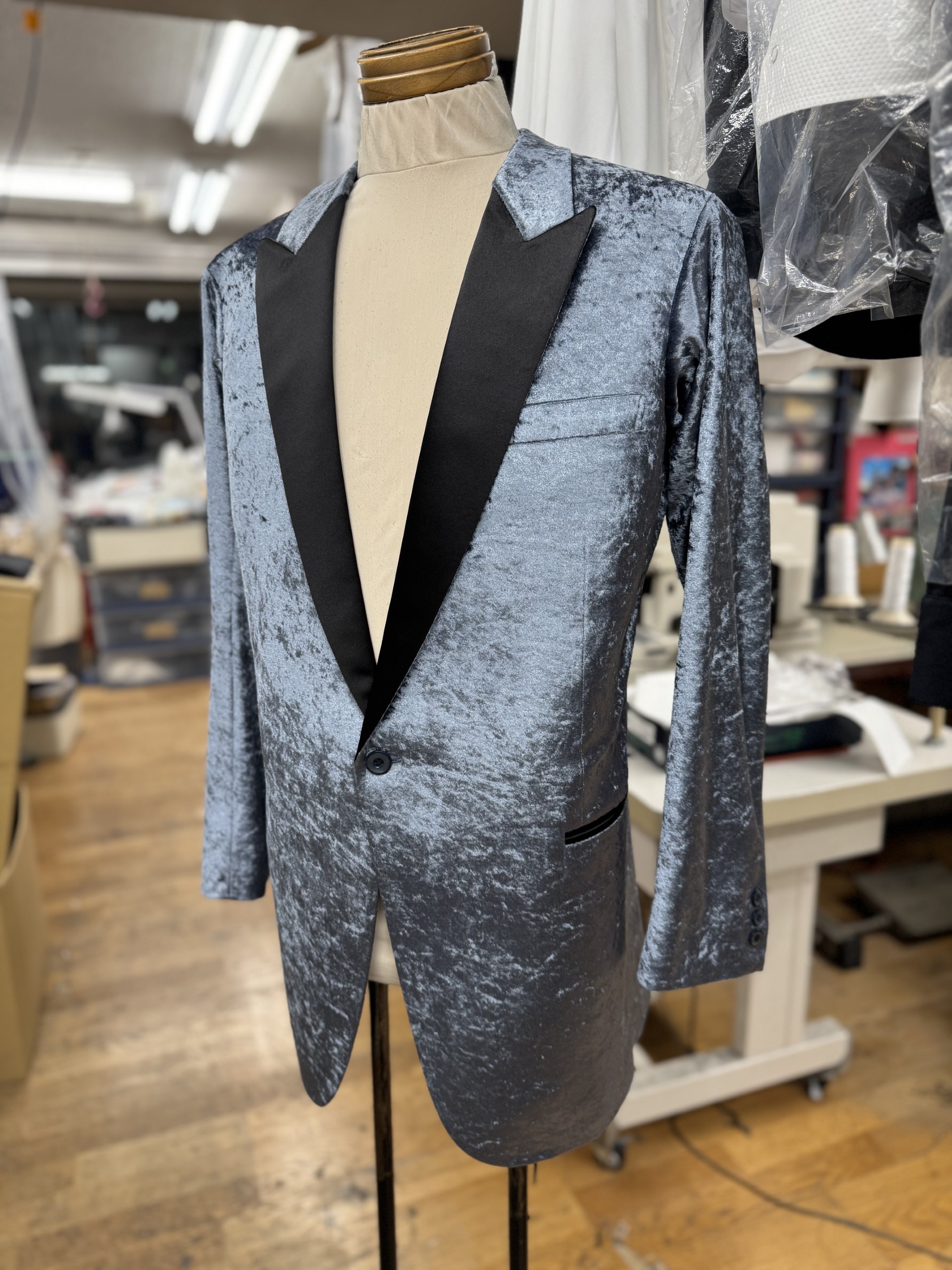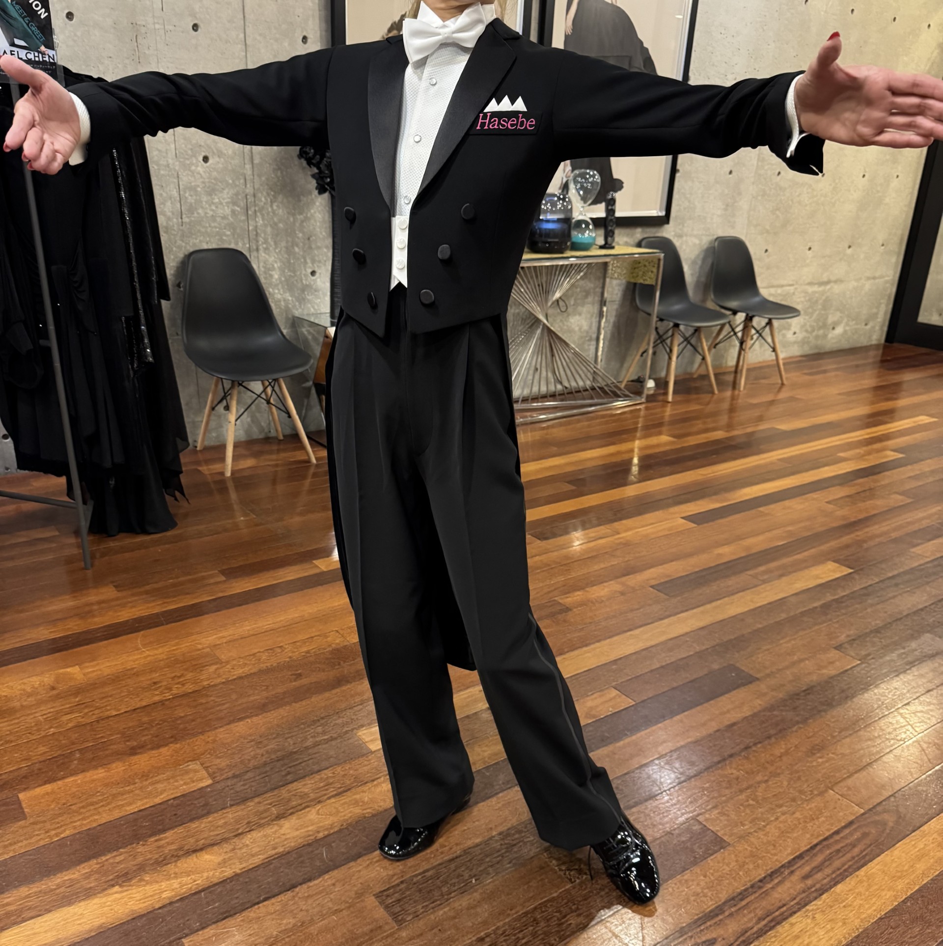 新着情報 NEWS Weekly Collection Report 2025.10.27~ 2025.10.31 Dance Costume HASEBE ~Weekly Collection Report~ 2025.10.27~ *New Tail Suit For Women 素材:ポリエステルNo.3 女性のお客様の燕尾服です。 お客様のご要望によりピンクのHasbeネームを胸元にお付けいたしました。 昨今、女性の方より燕尾服やタキシードのオーダーをいただく機会が増えております。 どんなお方にもピッタリな衣装をお作りすることが可能です。 男性役を本格的にされたいお客様はぜひご相談いただければと思っております。 こちらのお客様は先週ご紹介させていただいた 燕尾服上着・ズボン タキシード上着(こちらは仮縫いの状態のお写真です) の三点オーダーをしてくださいました。 本来燕尾服上下・タキシード上下の四点となるところ、ズボン一本分のお値段が浮くことになります。 タキシードの上着も燕尾服のズボンに合うよう仕掛けを付けさせていただき コストパフォーマンスが高いだけでなく、パーティーでの早着替えも上着のみを着替えれば完結する利便性にも優れた商品です。 タキシード、燕尾服ともにお考えのお客様はぜひご検討ください。 *New Tuxedo 素材:グレーブルークラッシュベロア プロの先生のタキシードオーダーです。 非常に珍しい色合いのクラッシュベロア生地を使用いたしました。 ベロアはスムースとクラッシュが主な種類となっており、こちらのクラッシュベロアは毛足の動きを楽しむため順目で使用します。 光沢感が引き立ち、陰影として踊ると毛足がクラッシュしている部分は動きや模様が浮き出て見え非常に綺麗です。 パーティーのデモで一際目立つ存在になる主役級のタキシードになりました。 以上、今週納品させていただきました衣装のご紹介でした。 今後納品させていただいた衣装を中心に毎週新着ブログを更新していきます。 次週もどうぞご期待くださいませ。 2025.10.31 一覧に戻る