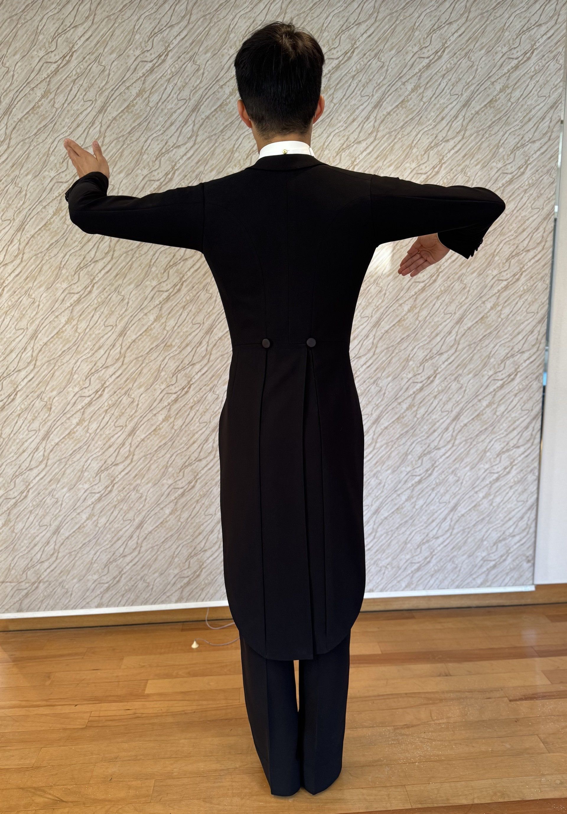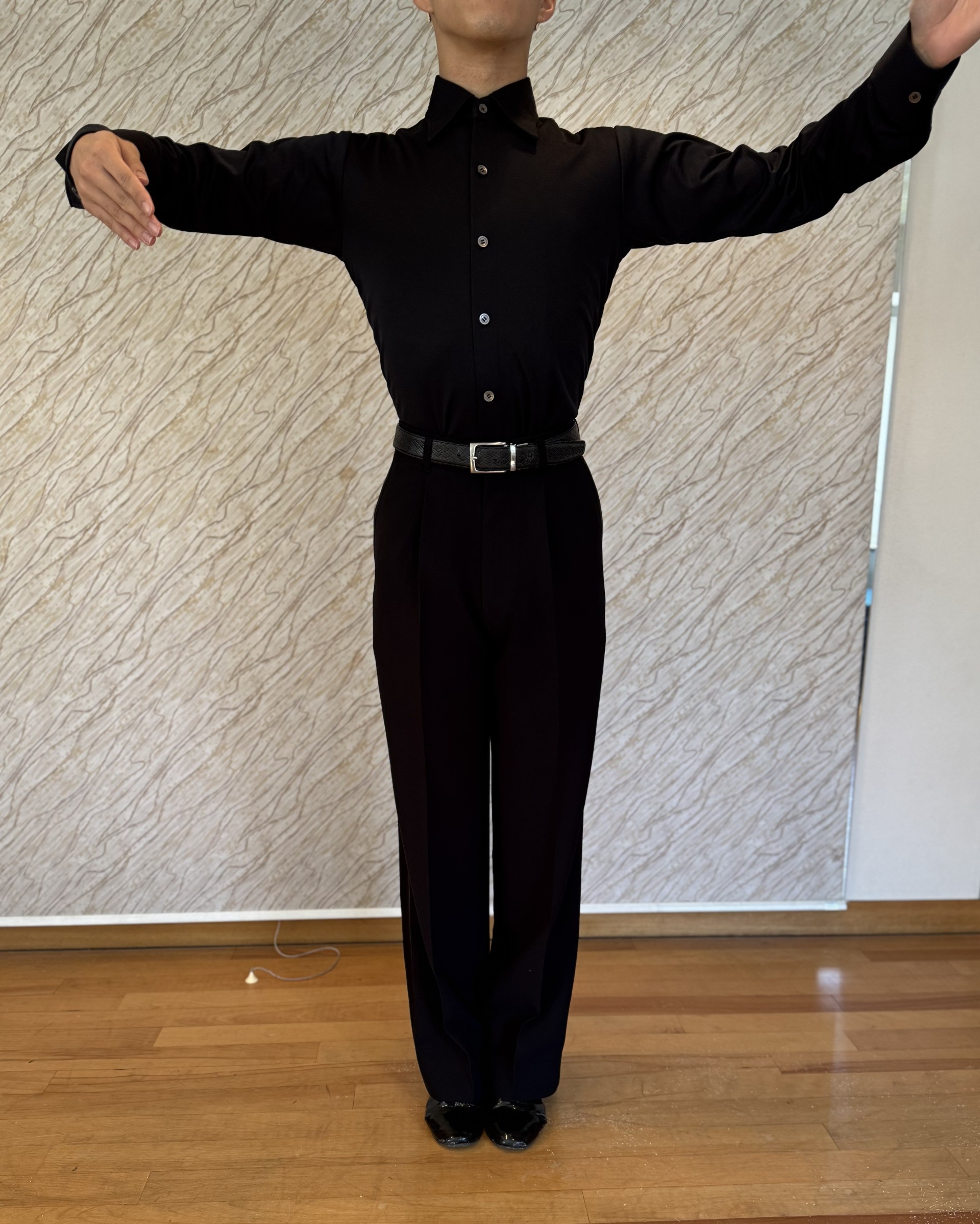 新着情報 NEWS Weekly Collection Report 2025.11.3~ 2025.11.07 Dance Costume HASEBE ~Weekly Collection Report~ 2025.11.3~ *New Latin Costume シャツ素材:黒クレープ、ワイルドストレッチレース パンツ素材:ポリエステルNo.3 大阪からお越しくださったお客様のラテンシャツ・ラテンパンツです。 前身頃に後ろ身頃にでデザイン性満載なシャツになりました。 胸元のフリルは形や分量をお客様のこだわりを詰め込んで再現させていただきました。 とても綺麗なフリルになっていると思います。 背面レースの抜け感も洒落た形の仕上がりです。 ラテンパンツは今流行りのテーパード型。 仮縫いで膝幅・裾幅に悩まれていたので後日お考えをご連絡いただき形を決め補正いたしました。 燕尾服もラテン衣装も大阪より本当にありがとうございました。 *New Tail Suit 素材:ポリエステルNo.3 プロの先生の燕尾服です。 身頃はもう少し詰められるのですが、身体の特徴として詰めすぎてしまうとフロアで弱く小さく見えてしまうことが懸念されるため、程よいラインでの補正をさせていただきました。 身体が最大限大きく見えるフィット感での完成となっております。 パンツの丈も完璧です。 *New Shirt&Pants シャツ素材:黒スムース パンツ素材:ポリエステルNo.3 プロの先生のオーダーです。 弊社で人気の高いストレッチノーアイロンシャツとパンツになります。 ホールドしても肩が上がらない裁断とアイロンのいらない皺になりにくい手軽さ、加えてストレッチ素材なのでピッタリ身体に合わせて作成してもストレスがありません。 お色も種類豊富に取り揃えております。(時期により色味の種類が変動いたします) パンツは側章(横のライン)をお付けし、フォーマルな場でもお召しいただけるようになっております。 一般的なレッスンパンツには側章をお付けしないので、こちらも事前のお打合せでデザインを決めていきます。 以上、今週納品させていただきました衣装のご紹介でした。 今後納品させていただいた衣装を中心に毎週新着ブログを更新していきます。 次週もどうぞご期待くださいませ。 2025.11.7 一覧に戻る
